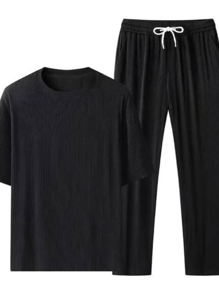 Men’s High-End Summer Sports Suit – Quick-Dry Ice Silk Knitted T-Shirt & Long Pants Casual Set