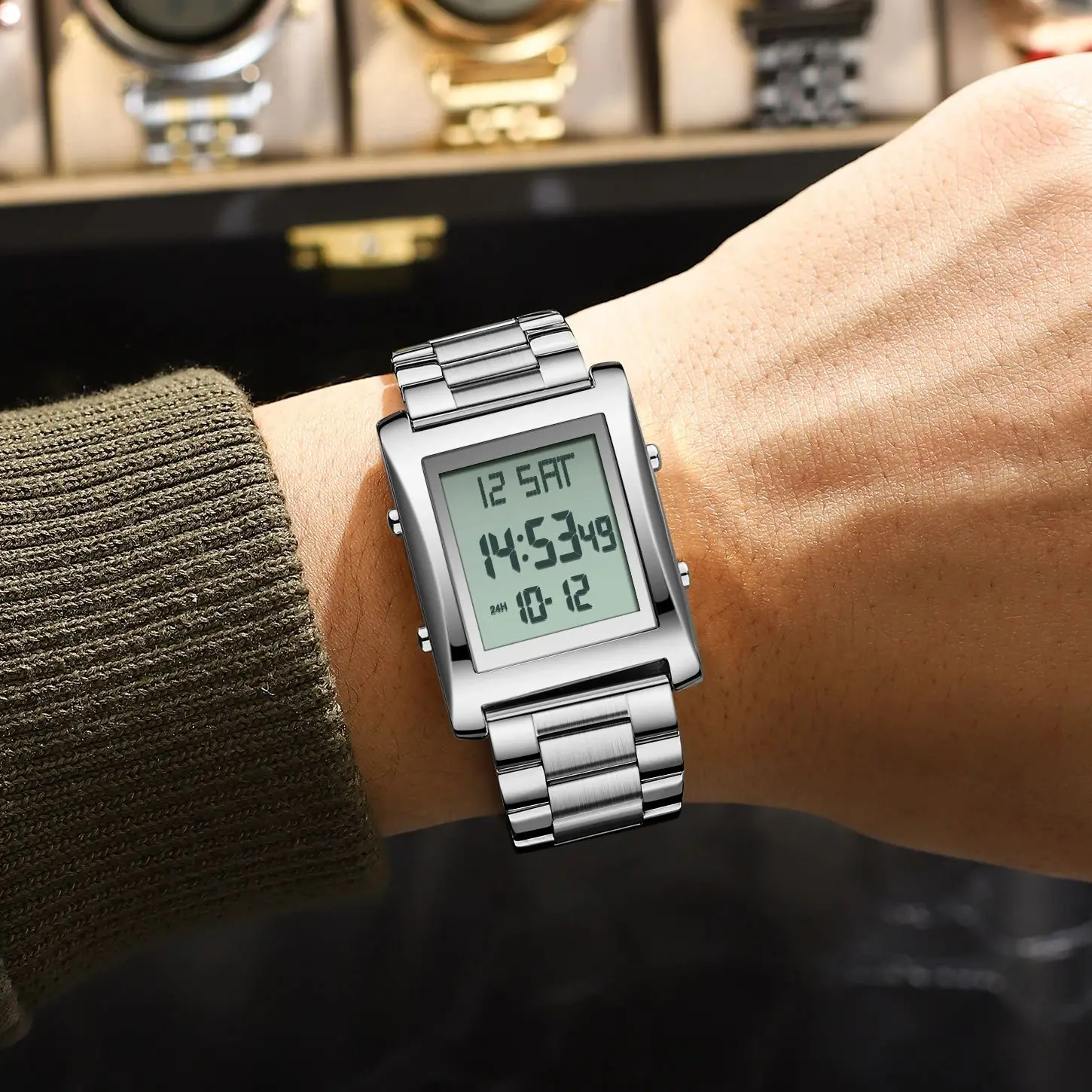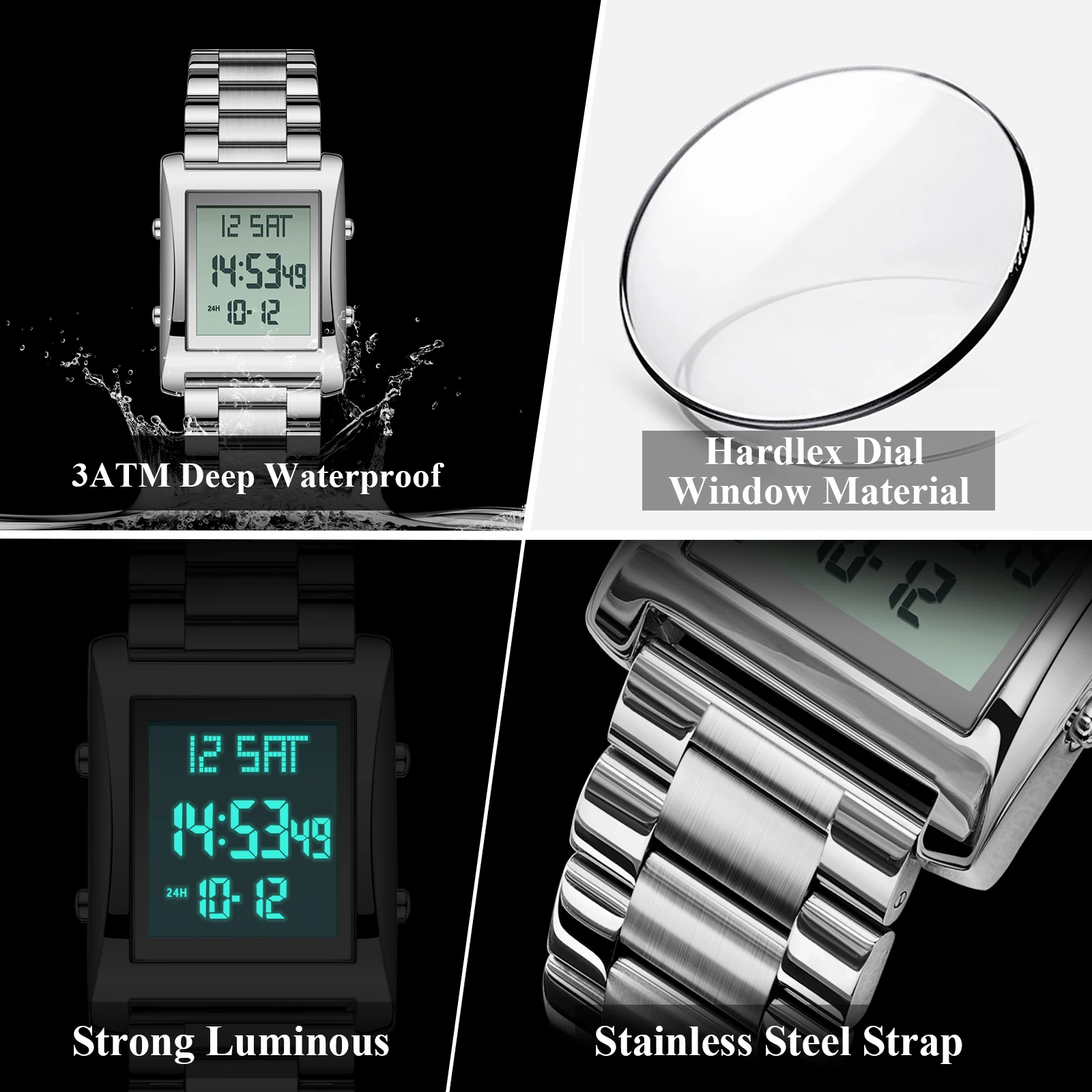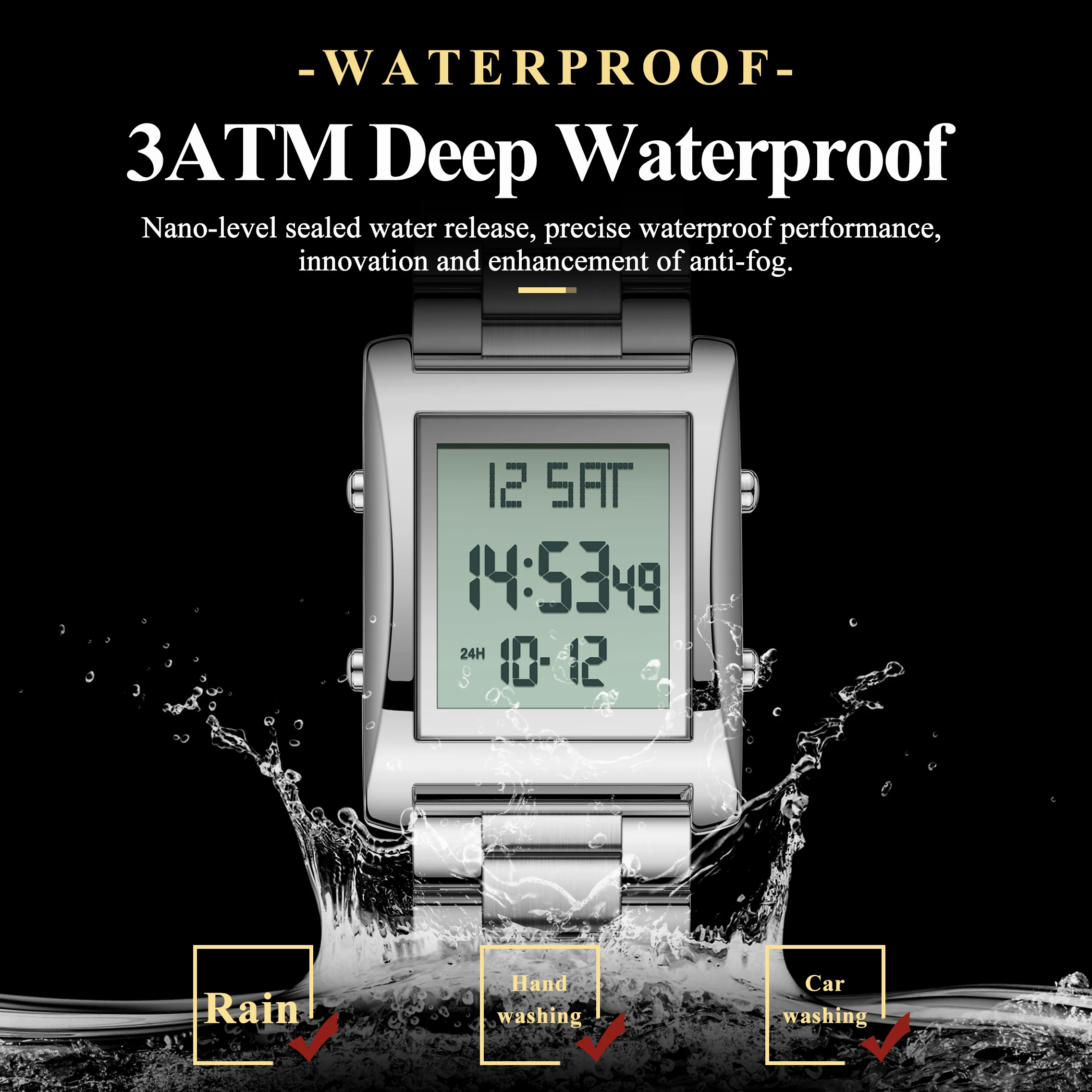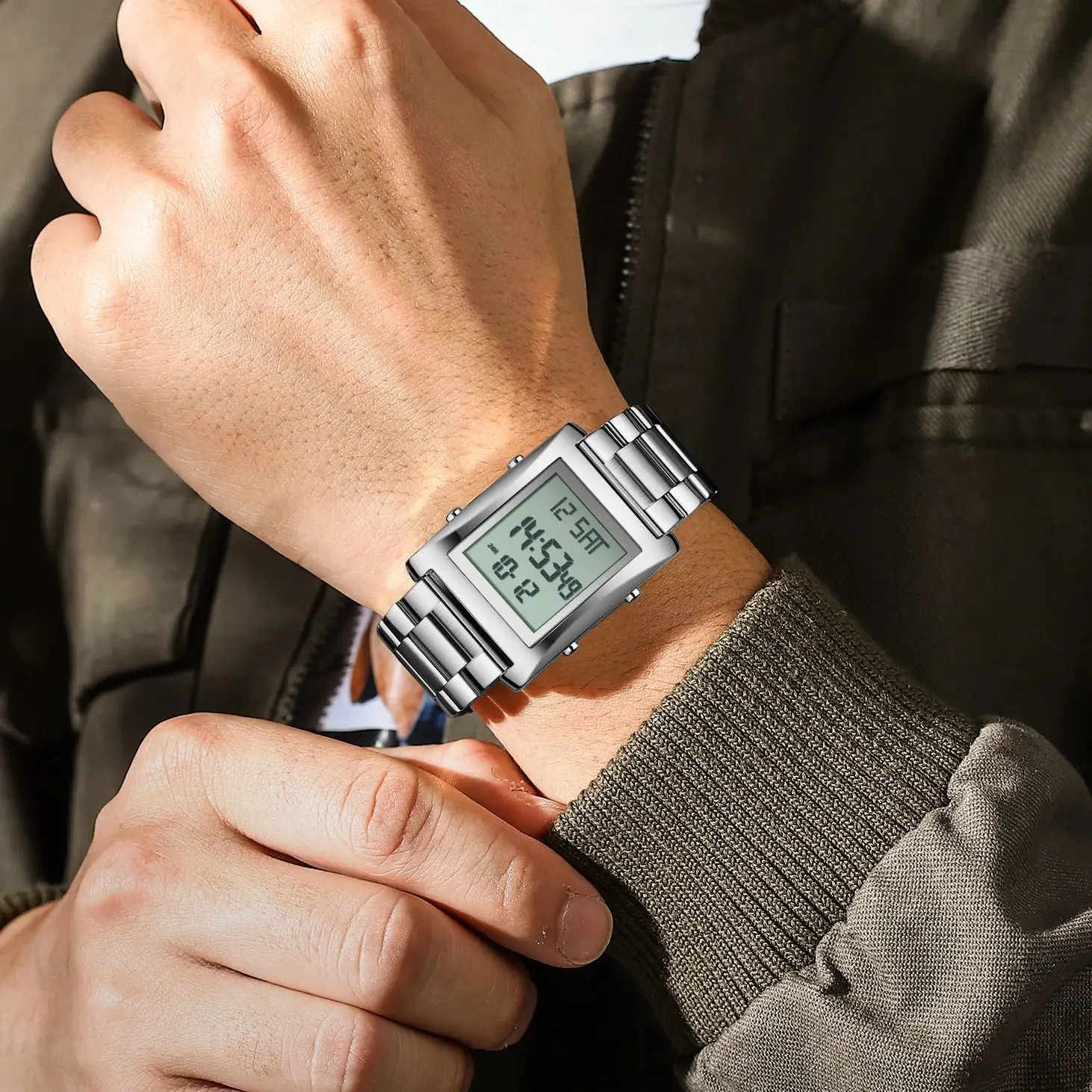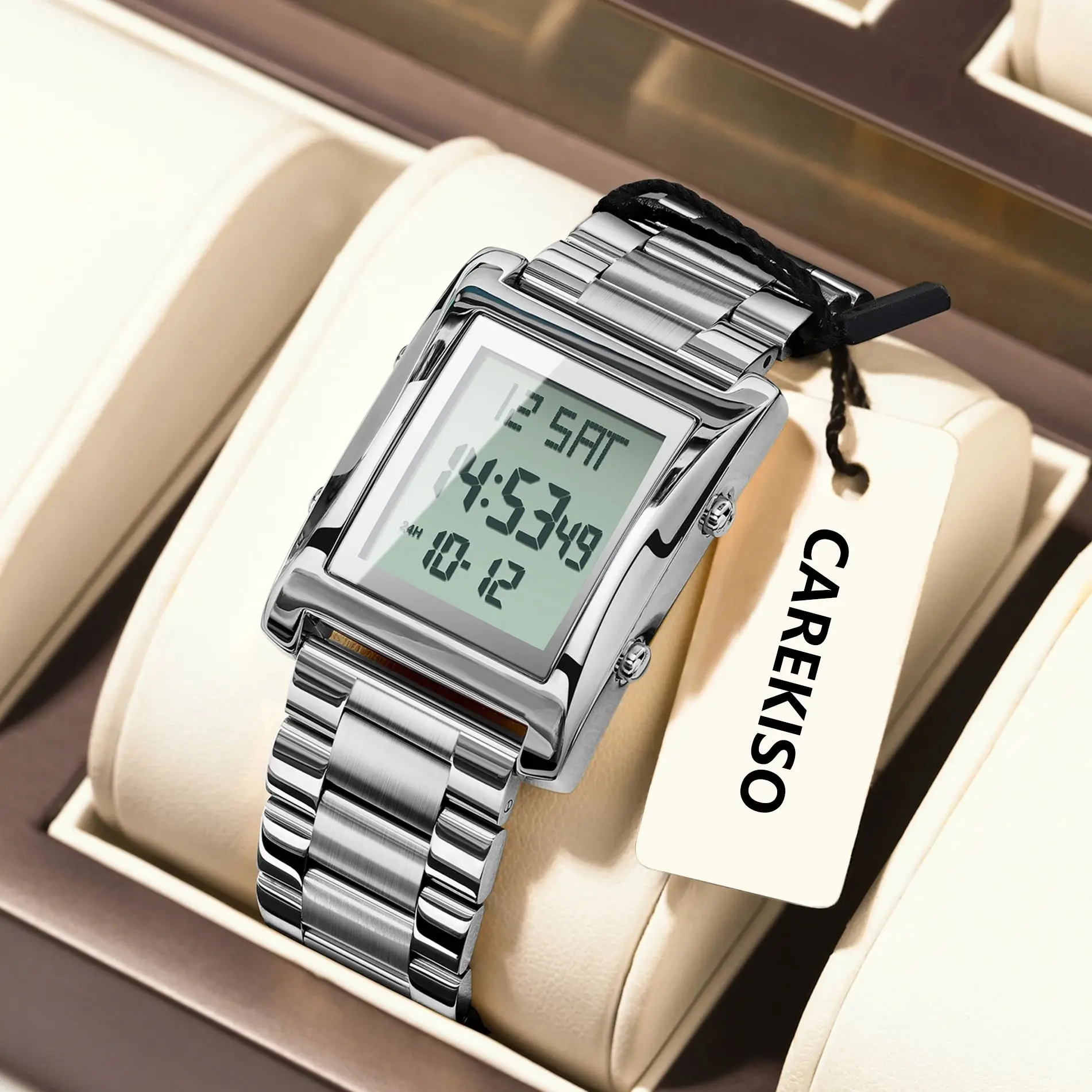 CAREKISO Original LED Men Watch Waterproof Week Calendar Alarm Man Wristwatch Rectangle Stainless Steel Electronic Men’s Watches