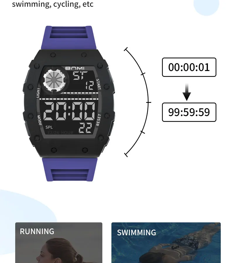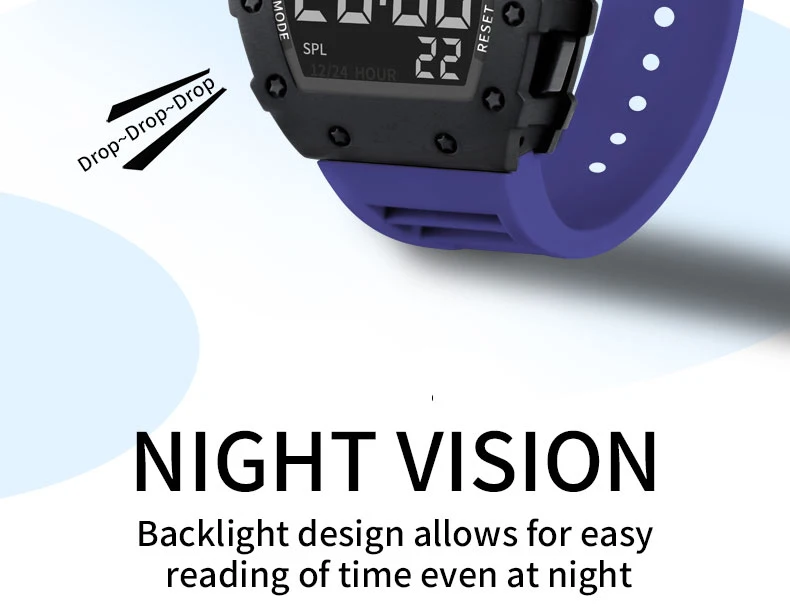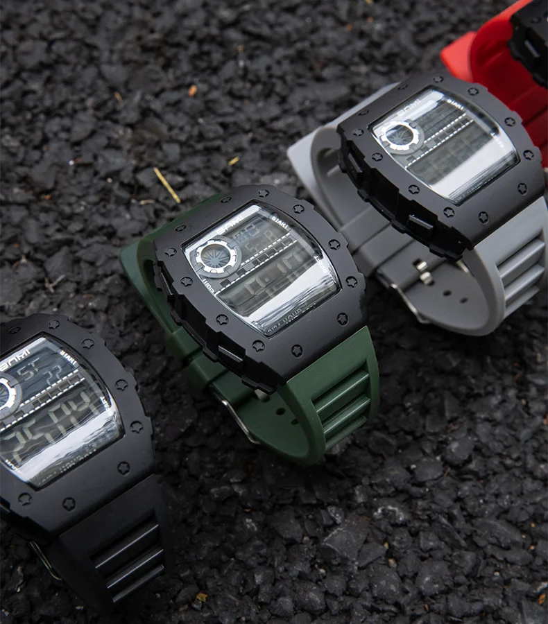 Fashion Men Sport Tonneau LED Display Watches Outdoor Waterproof Fitness Electronic Watch Military Kids Clock Gifts